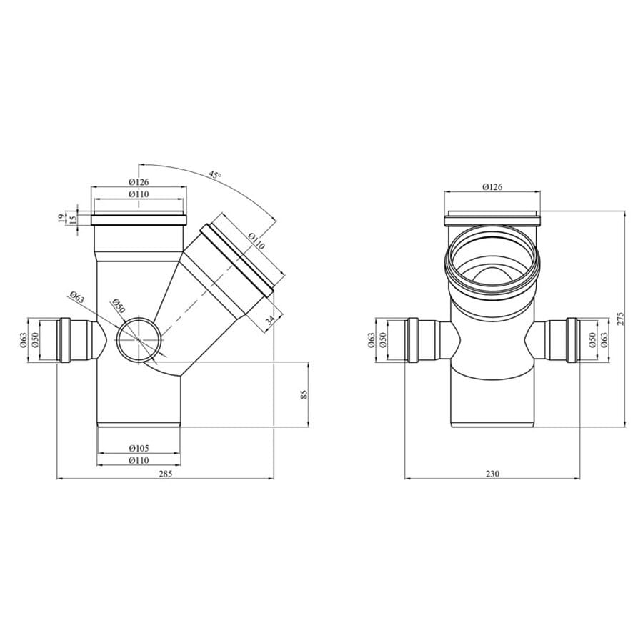 | Дополнительные характеристики | Гарантирует надежное и герметичное соединение, Обеспечивает удобное соединение труб в двух плоскостях для организации канализационной системы, Полипропилен обеспечивает длительный срок службы и устойчивость к коррозии |