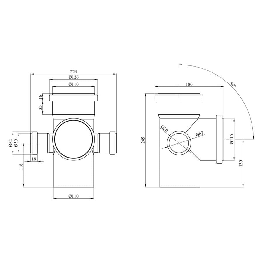 | Диаметр трубы, мм | 110x110x110x50x50 |