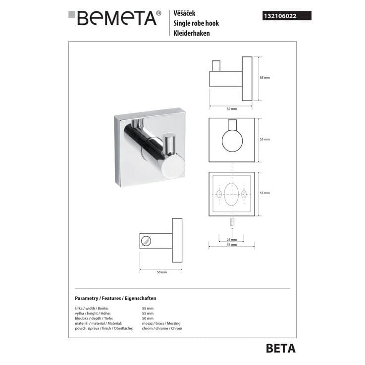 Крючок для полотенец Bemeta Beta металл, хром (132106022)