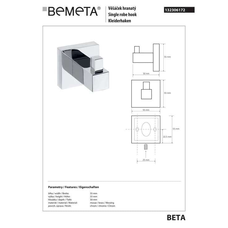 Крючок для полотенец Bemeta Beta металл, хром (132306172)