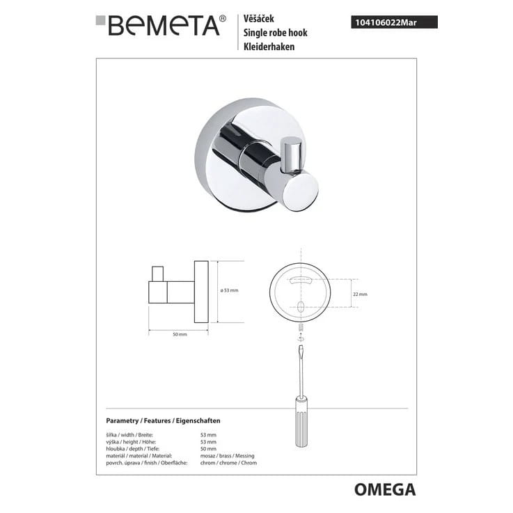 Крючок для полотенец Bemeta Omega металл, хром (104106022)