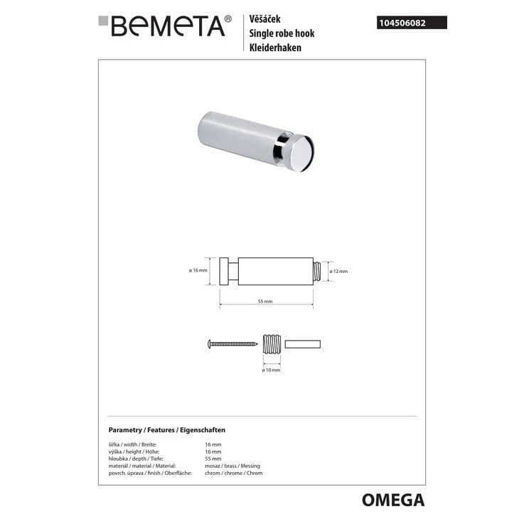 Крючок для полотенец Bemeta Omega металл, хром (104506082)