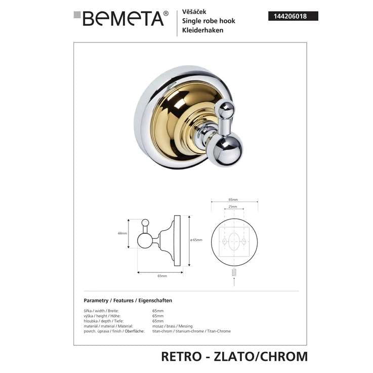 Крючок для полотенец Bemeta Retro металл, золото/хром (144206018)