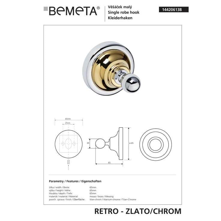 Крючок для полотенец Bemeta Retro металл, золото/хром (144206138)
