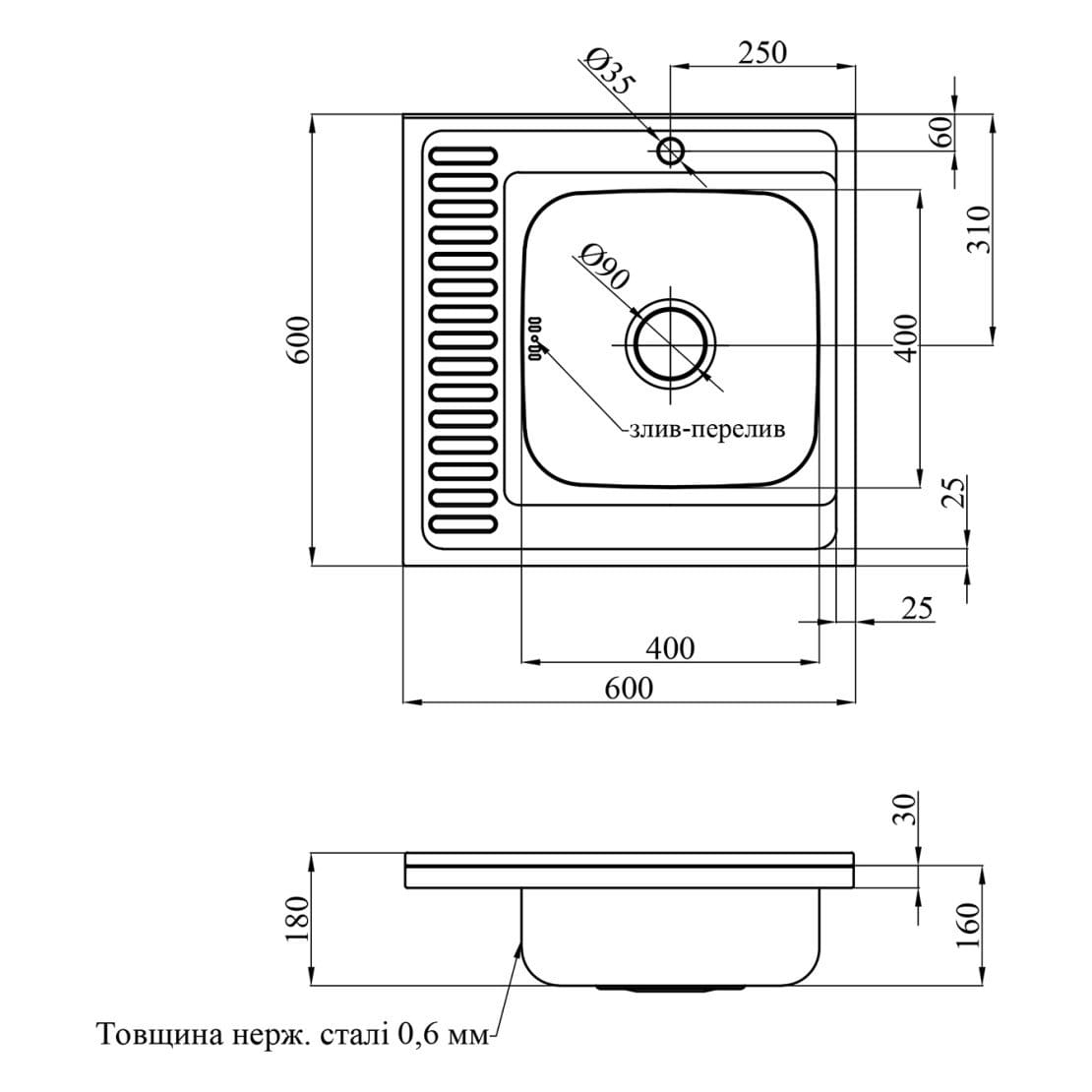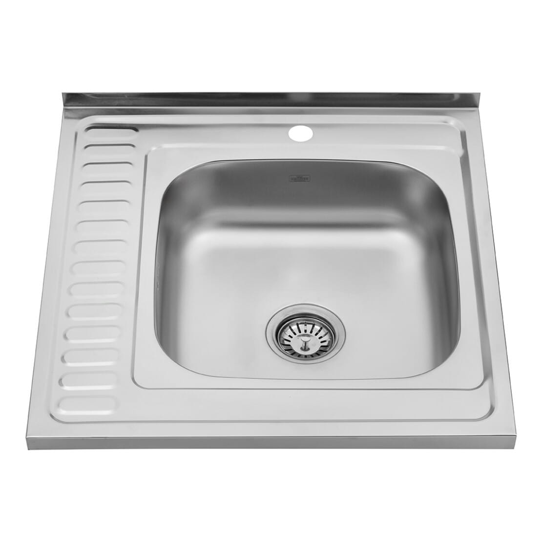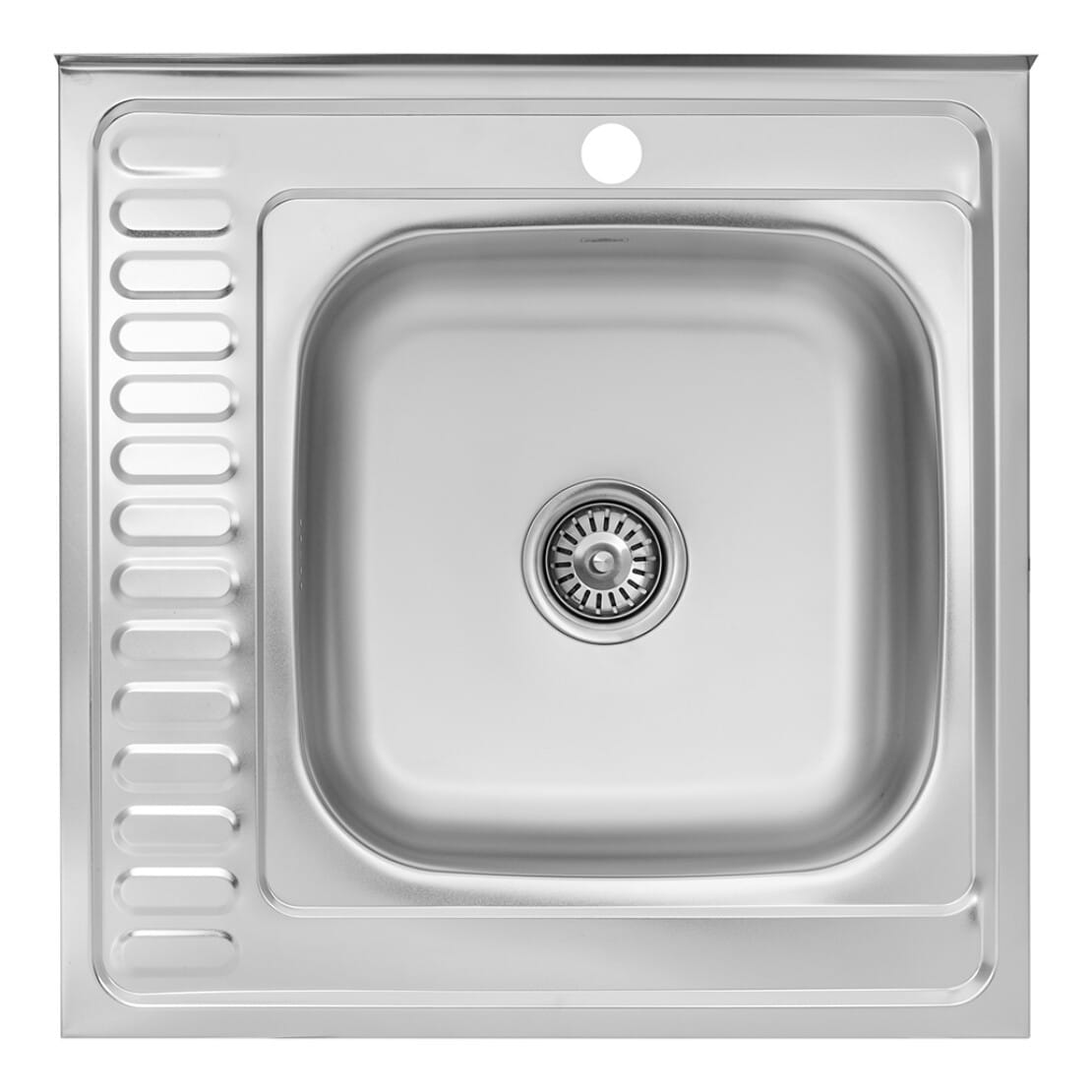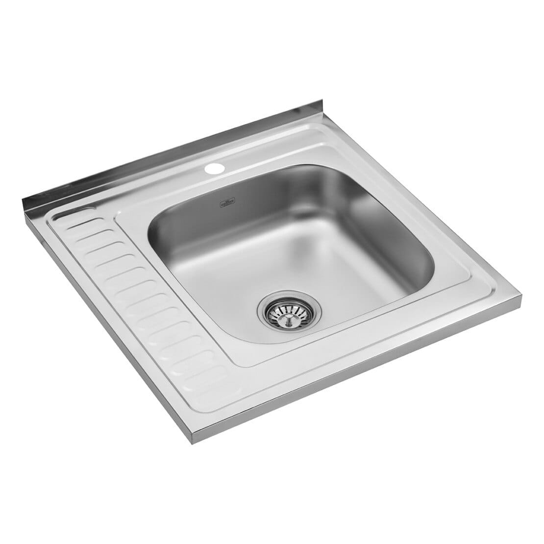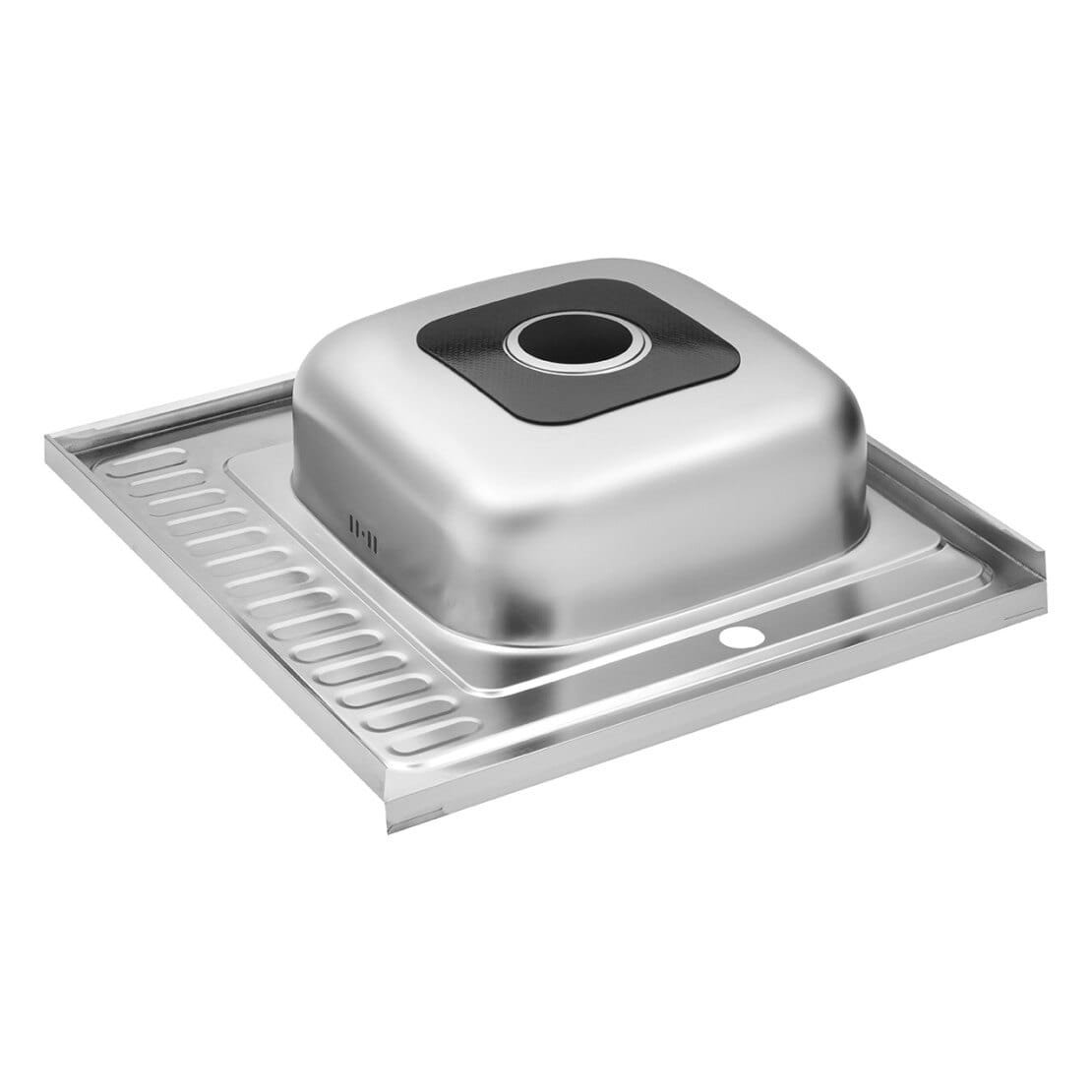 Кухонная мойка Kroner KRP Satin 600×600 R накладная, квадратная, сталь (0,6 мм)