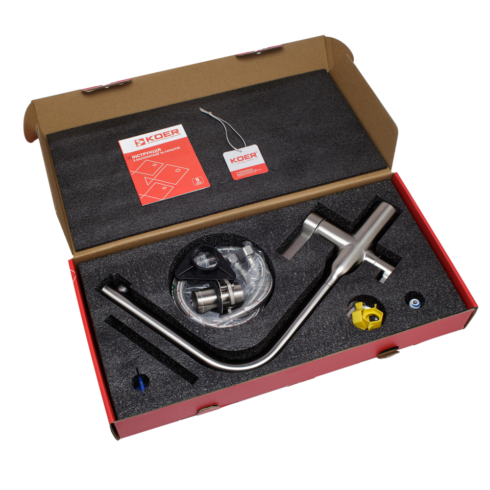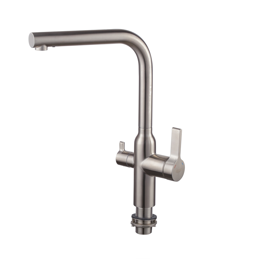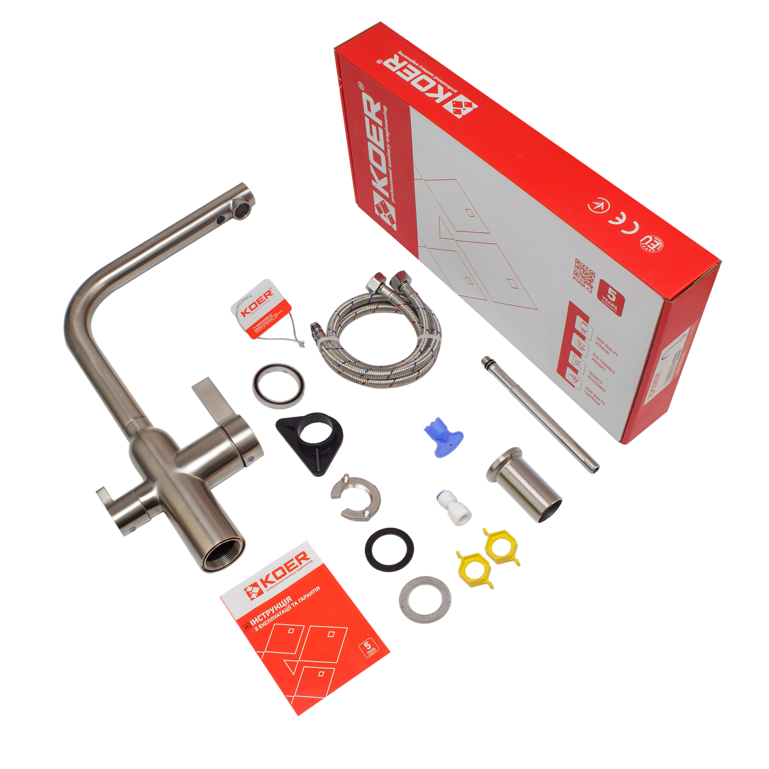 Кухонный смеситель Koer KI-72020-02 двухрычажный, сталь (KR4797)