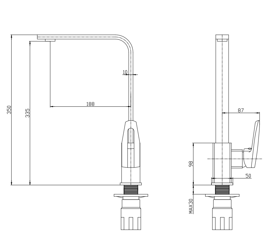 | Тип излива | Г-образный, Поворотный, Высокий |