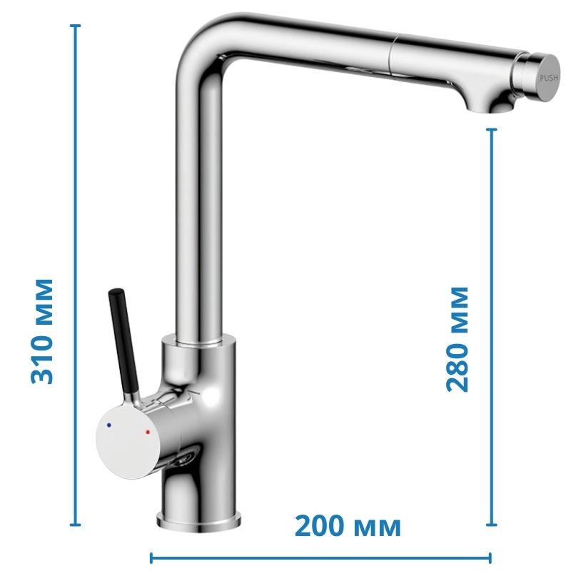 | Особенности смесителя | С выдвижной лейкой, С режимом душ/струя |