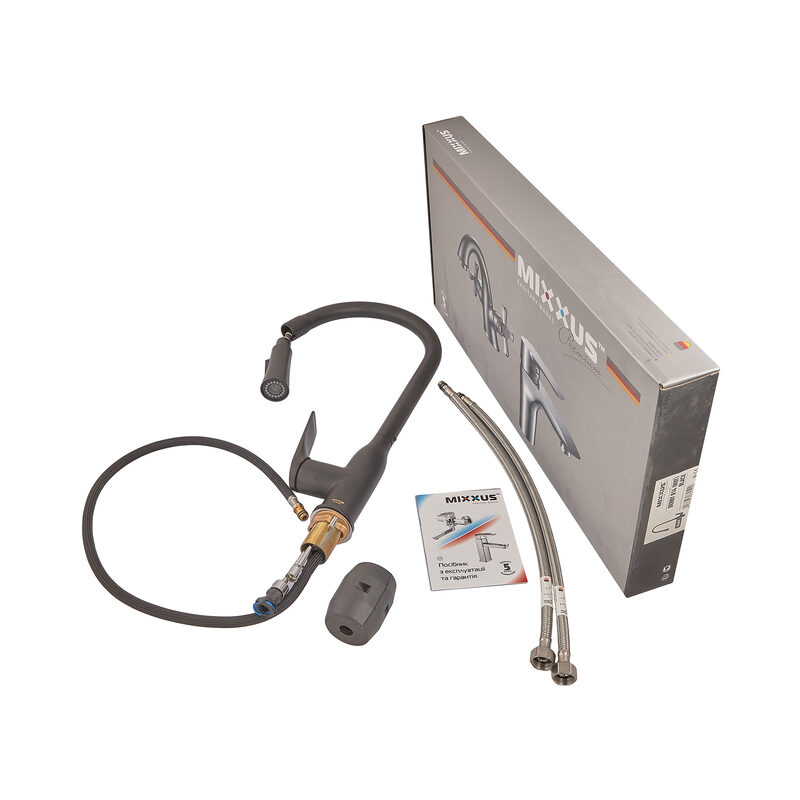Кухонный смеситель Mixxus Premium Derby 014 с выдвижным изливом, черный матовый (MI6605)