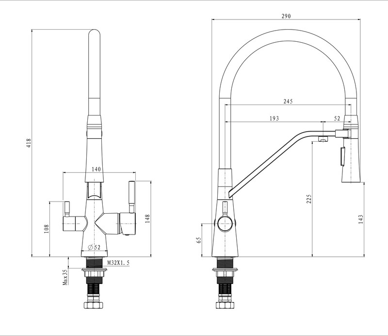 | Тип излива | U-образный, Выдвижной, Поворотный, Рефлекторный (Гибкий), Высокий |
