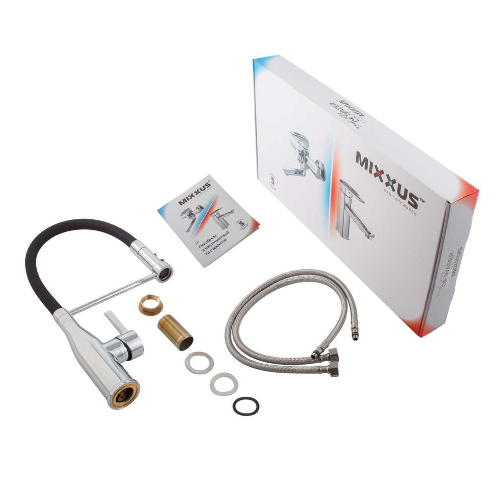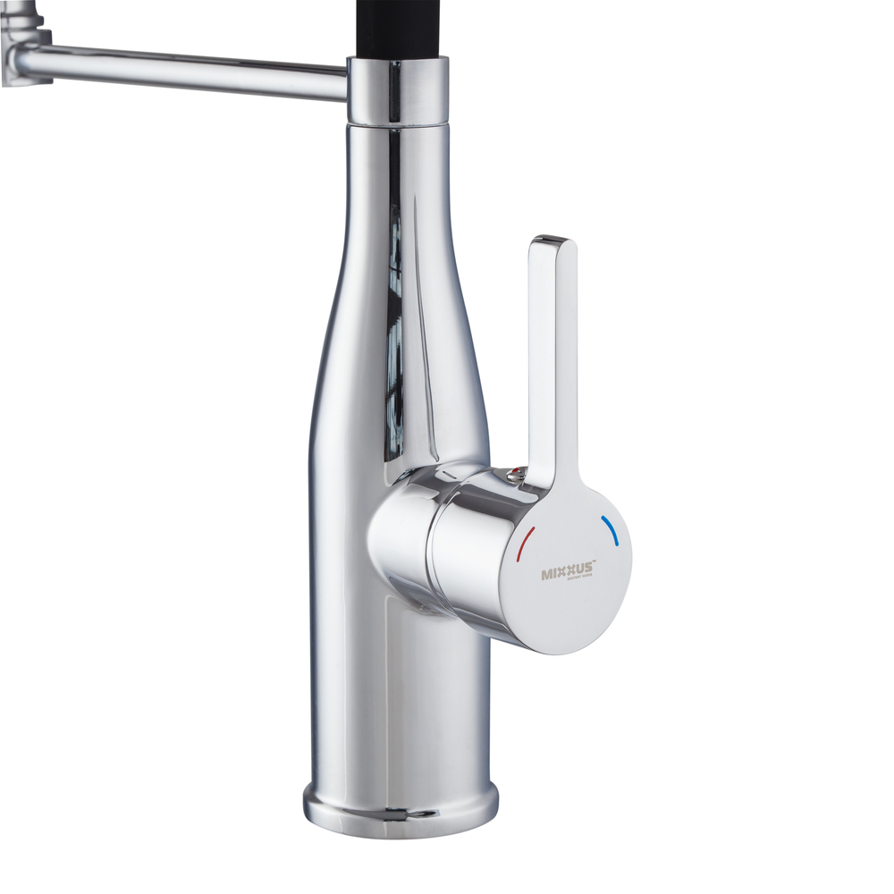 Кухонный смеситель Mixxus Premium Summer 017 с гибким изливом, хром/черный (MI6960)