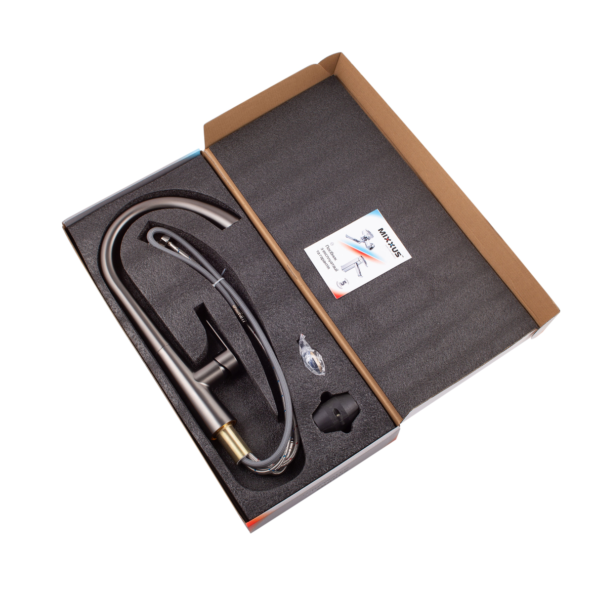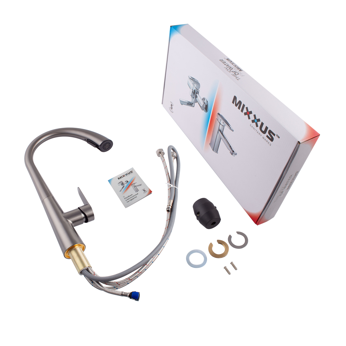 Кухонный смеситель Mixxus Premium Warta 014 с выдвижным изливом, графит (MI6957)