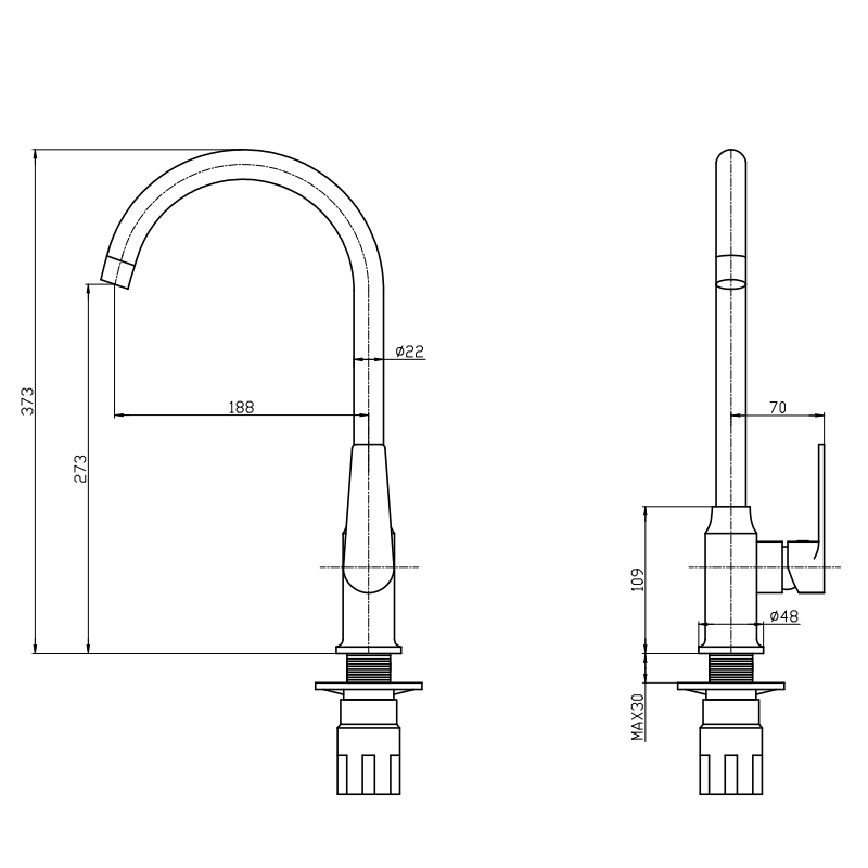 | Высота излива, мм | 270 |