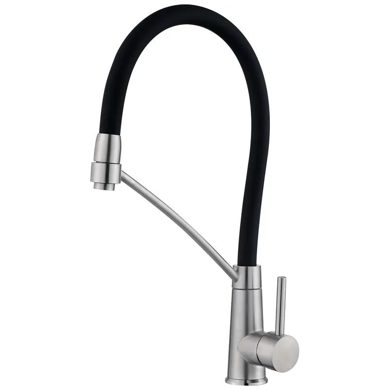 Кухонный смеситель Zerix Ful-017 с гибким изливом, черный/сталь (ZX5992)