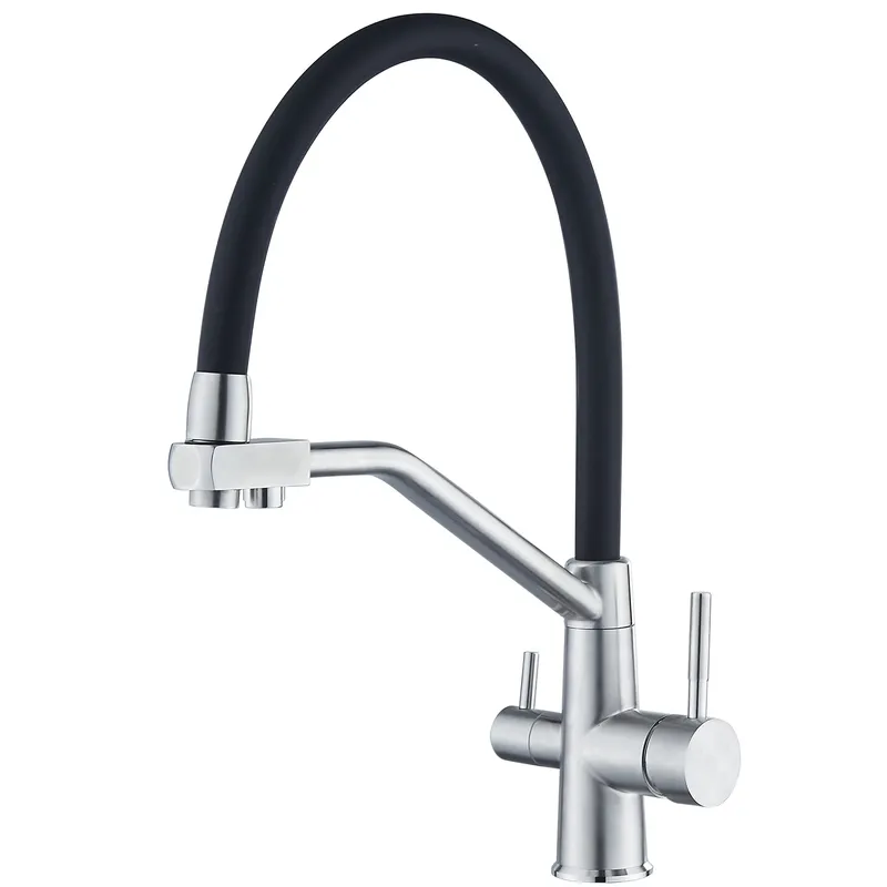Кухонный смеситель Zerix Ful-021 двухрычажный, сталь/черный (ZX5997)