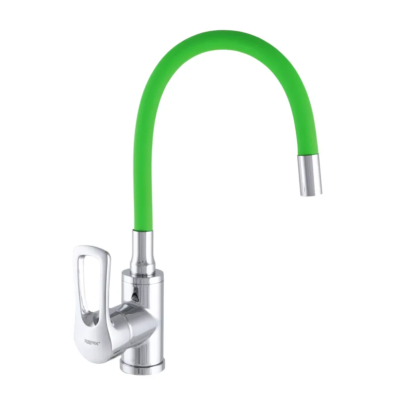 Кухонный смеситель Zerix SAR 181 с гибким изливом, хром/зеленый (ZX2675)