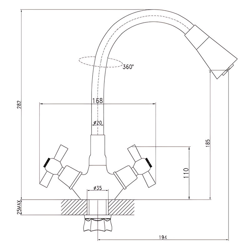 | Длина излива, мм | 194 |