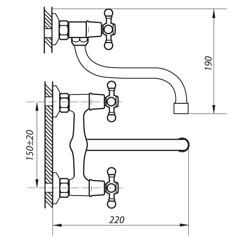 | Вид монтажа смесителя | Настенный |