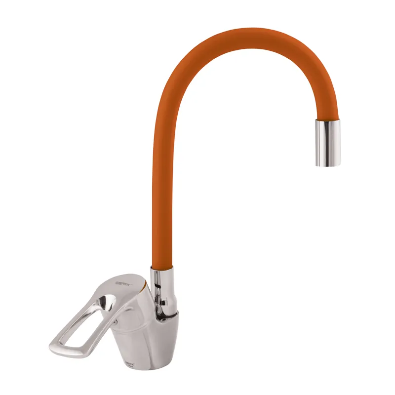 Кухонный смеситель Zerix YUB 181 с гибким изливом, хром/оранжевый (ZX0434)