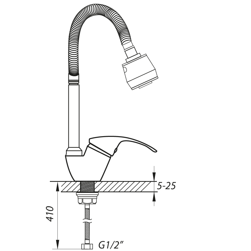 | Комплектация | Смеситель, Распылительная головка (2 режима), Гибкая подводка, Крепёжная гайка |