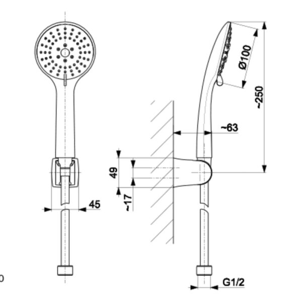 | Комплектация | Лейка для ручного душа, Держатель для ручного душа, Душевой шланг, Комплект креплений |