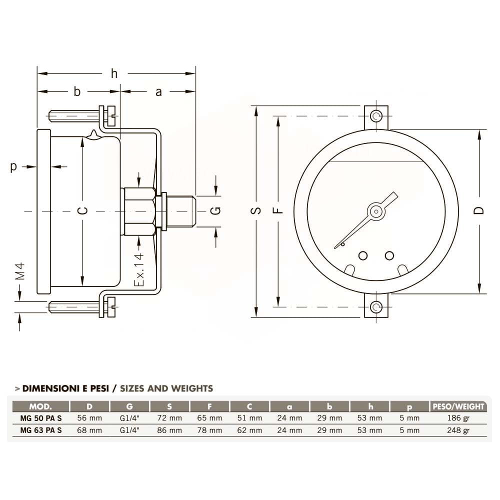 Манометр аксиальный Cewal MG 63 PA S глицериновый 1/4″ 16 бар 63мм с креплением (91498030S)