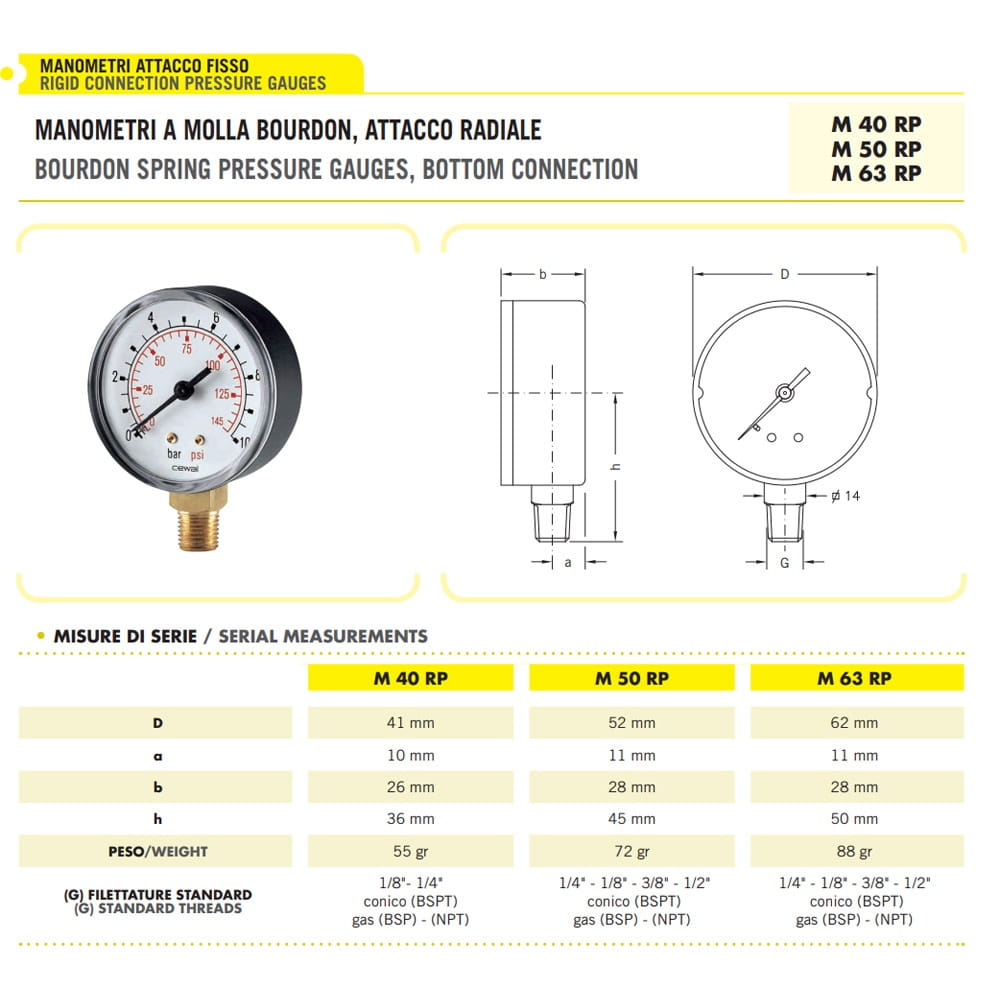 Манометр радиальный Cewal M 40 RP 1/8″ 10 бар 40мм (91441411)