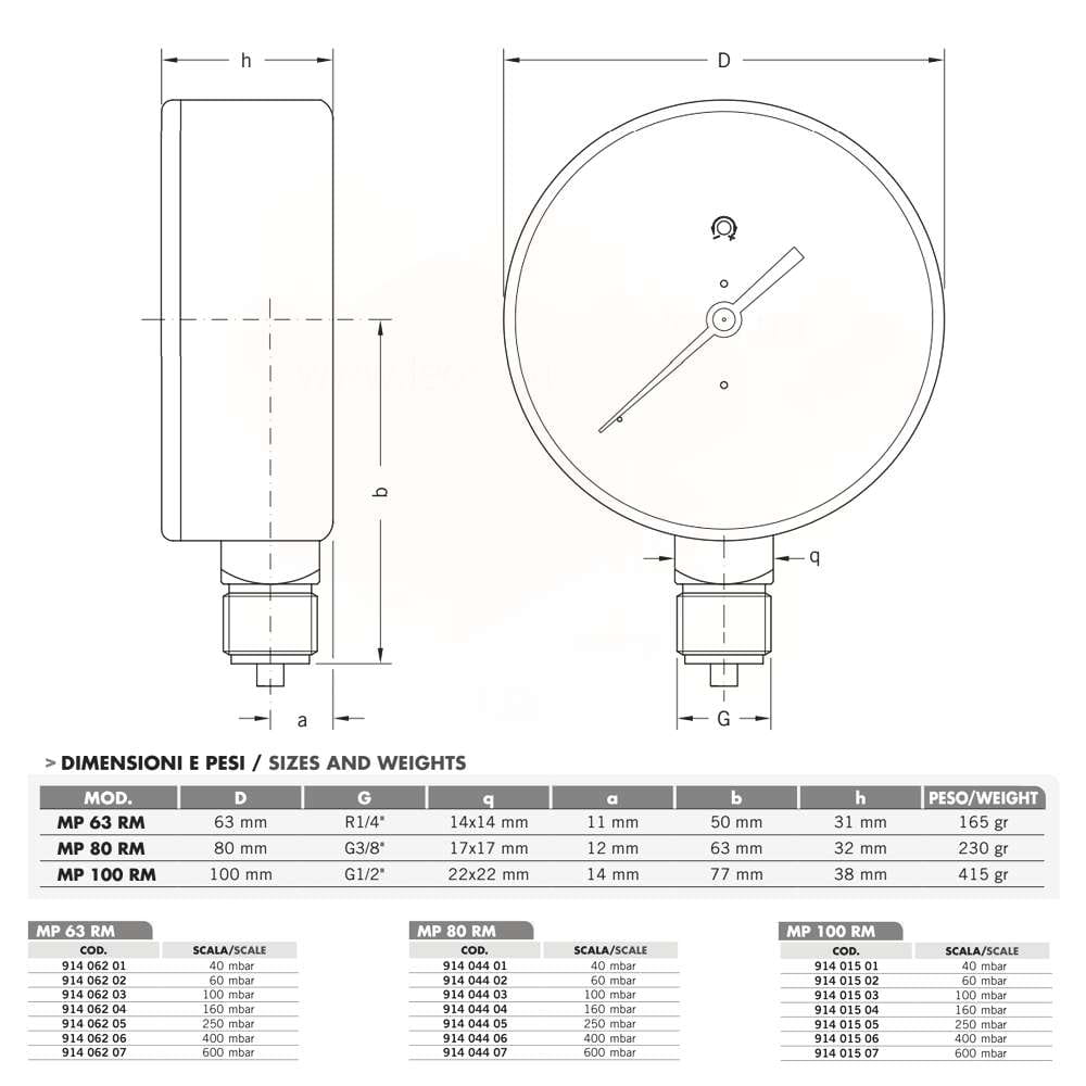 Манометр радиальный Cewal MP 63 RM 1/4″ 25 бар 63мм (91406205)