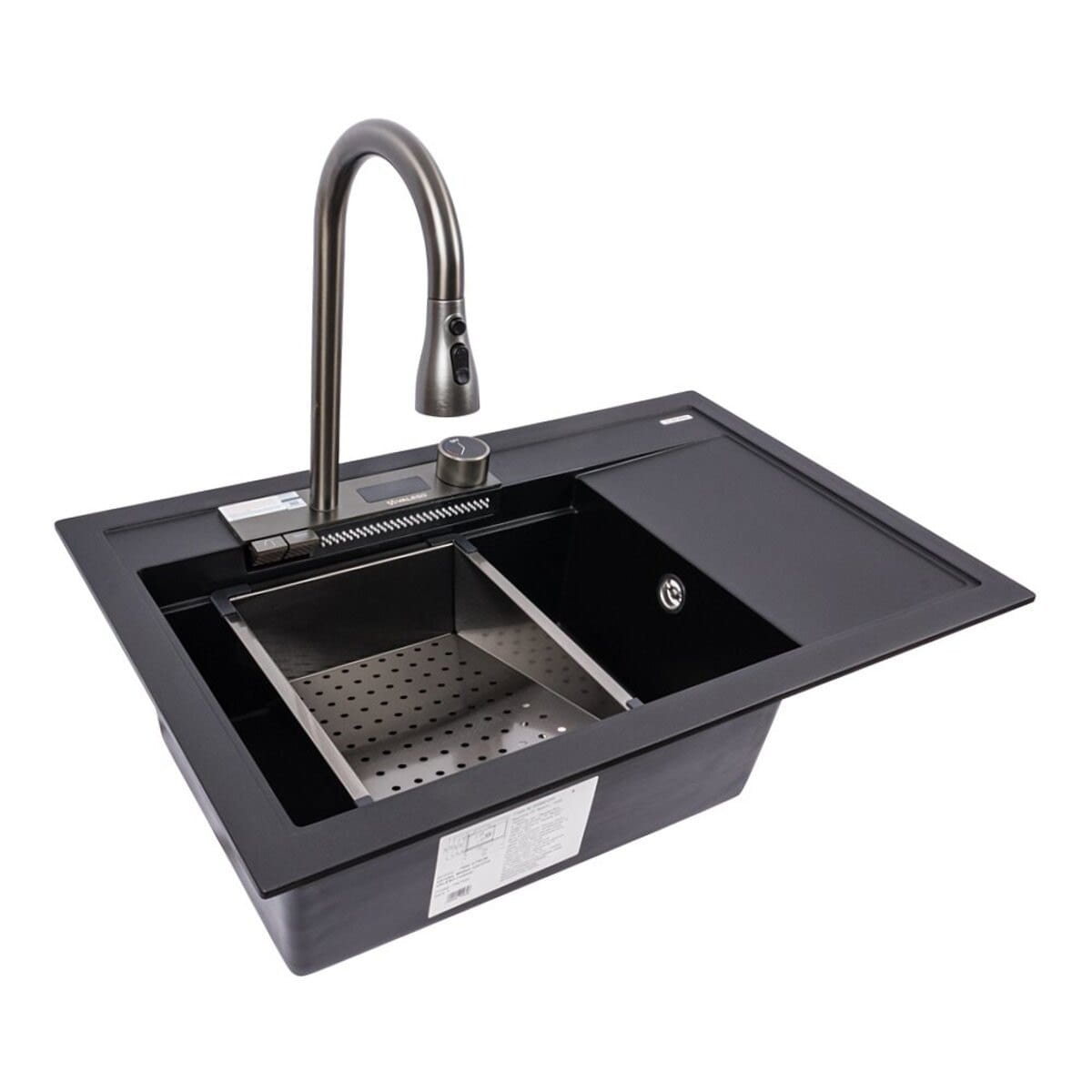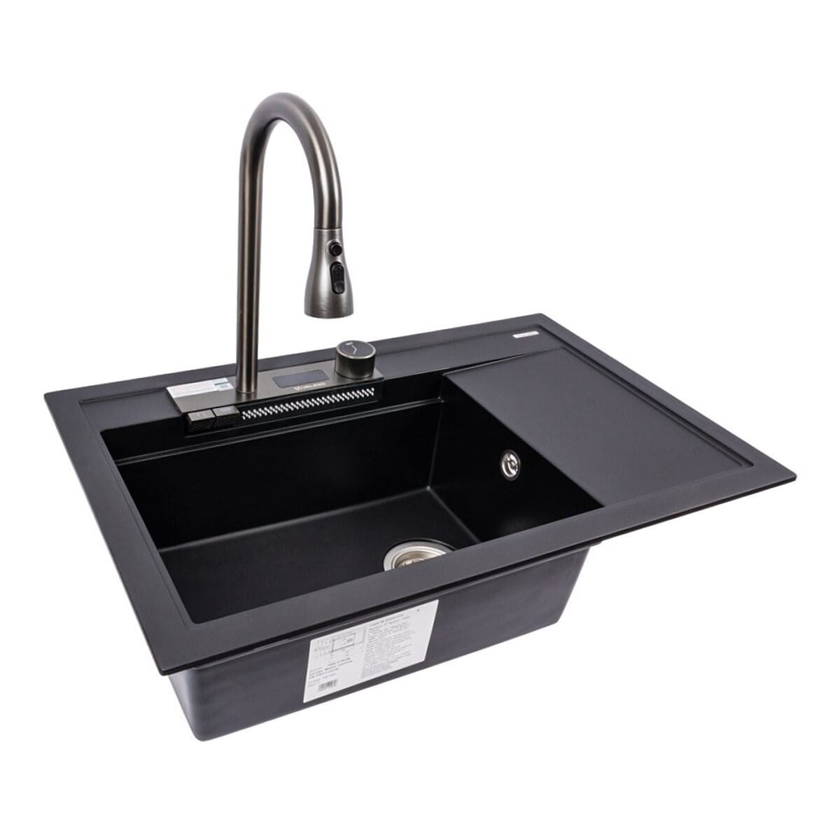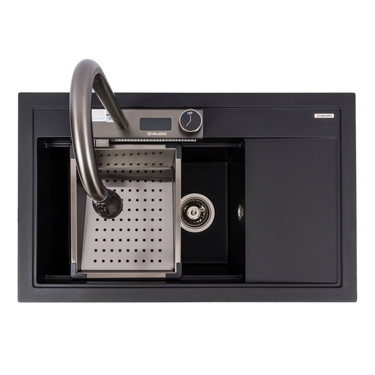 Многофункциональная мойка Valeso Atrum 790×500 накладная, гранит, черная матовая