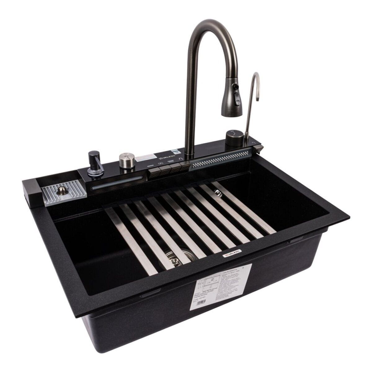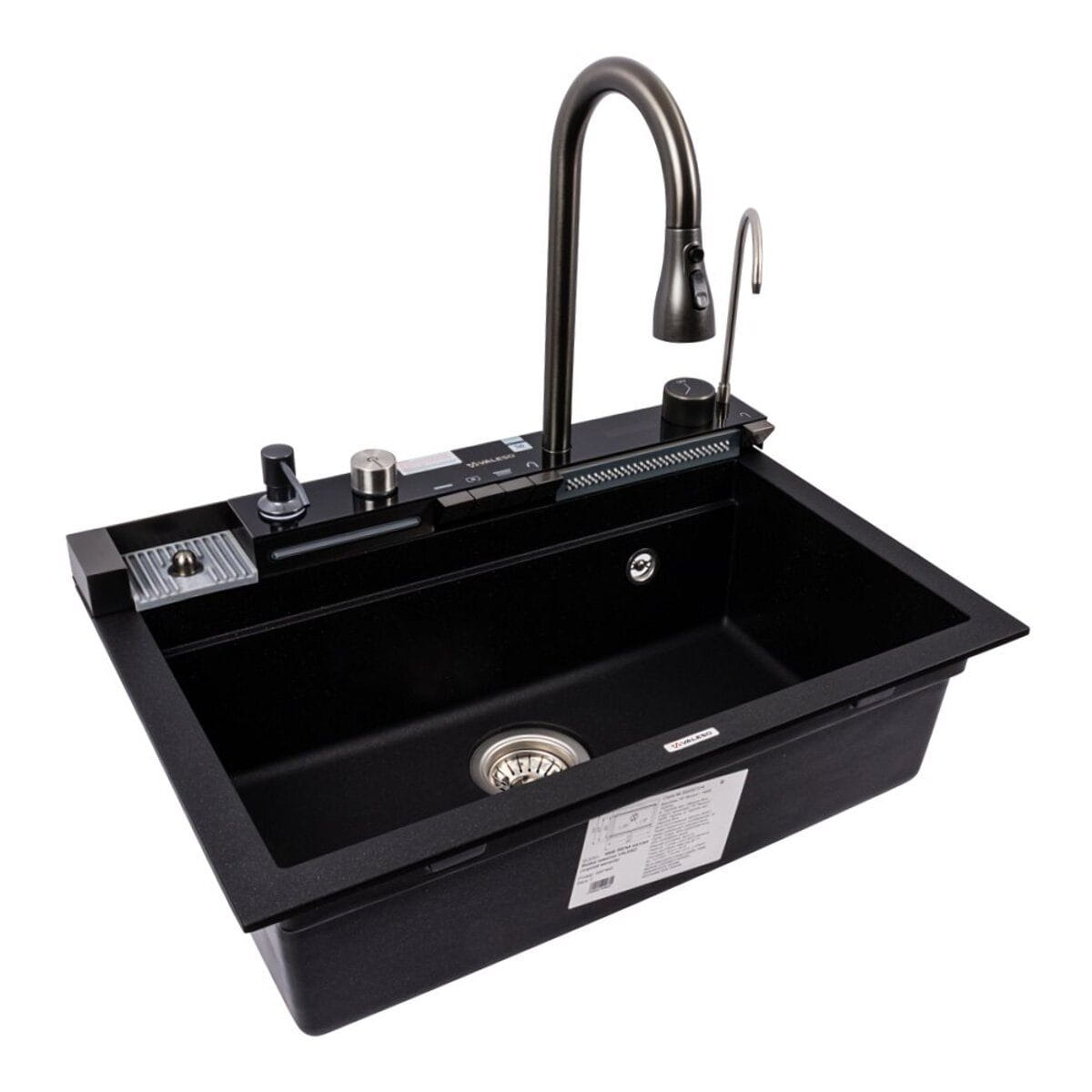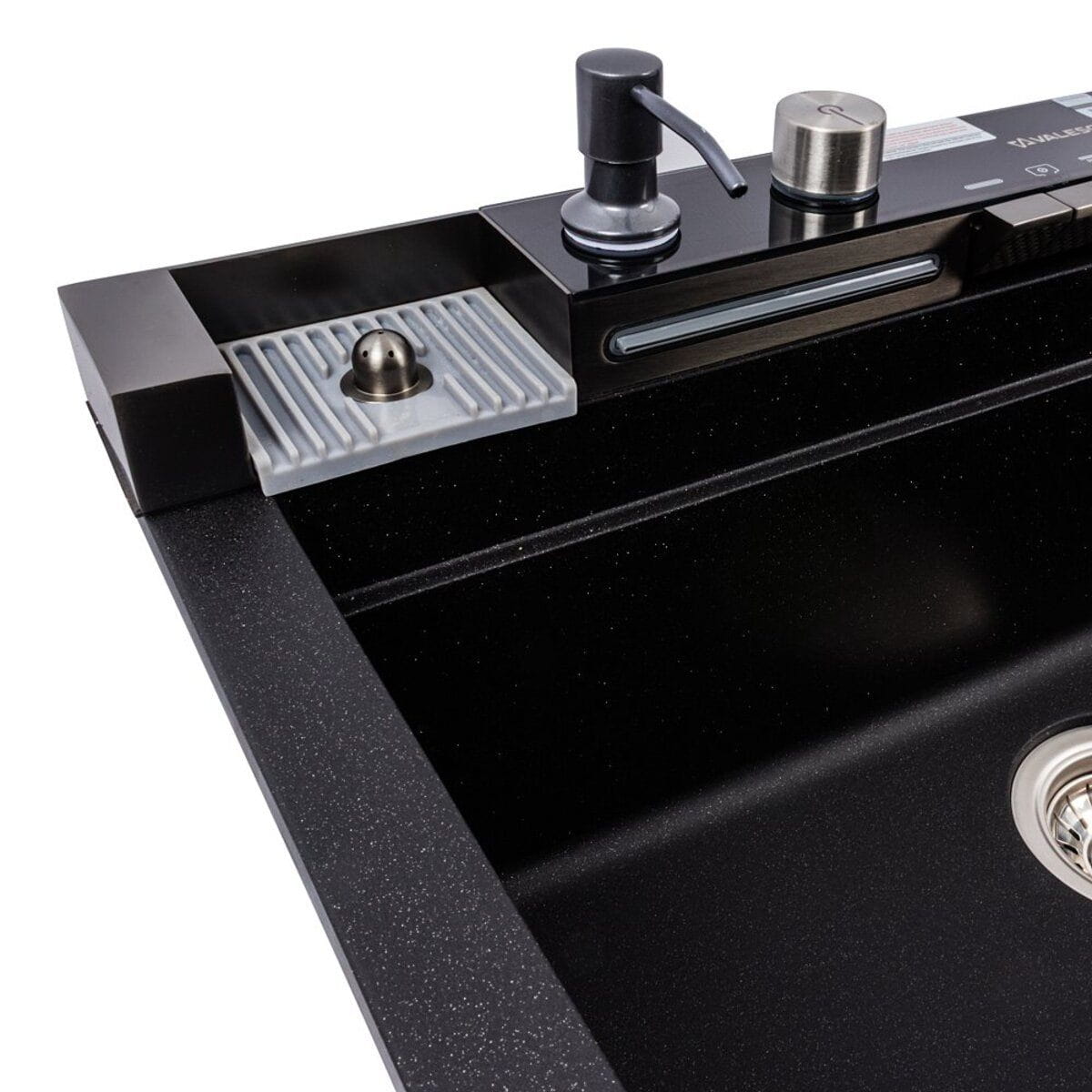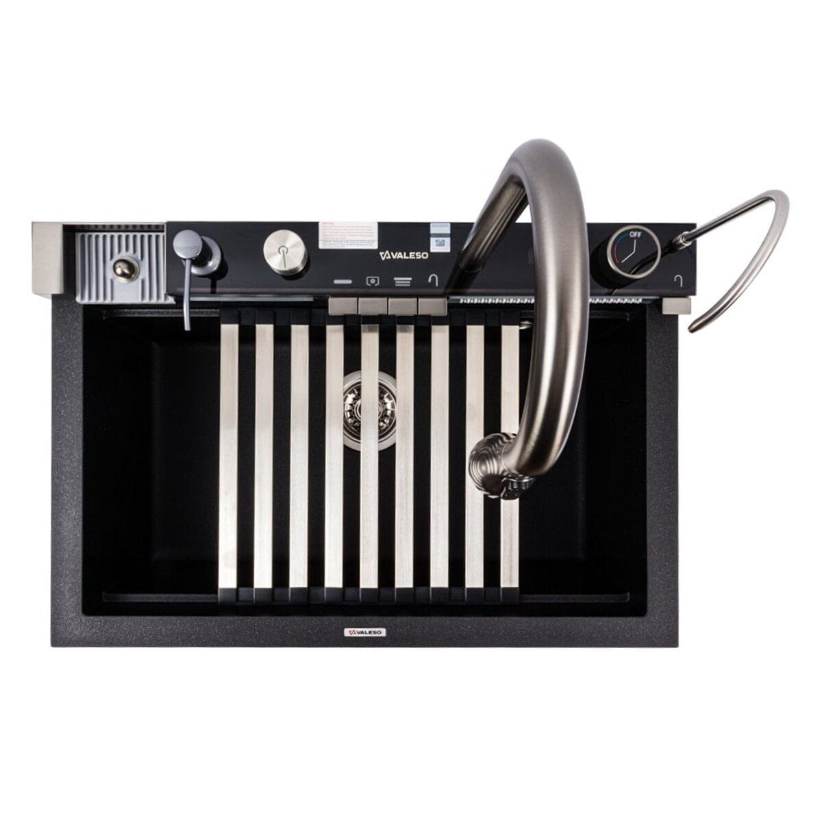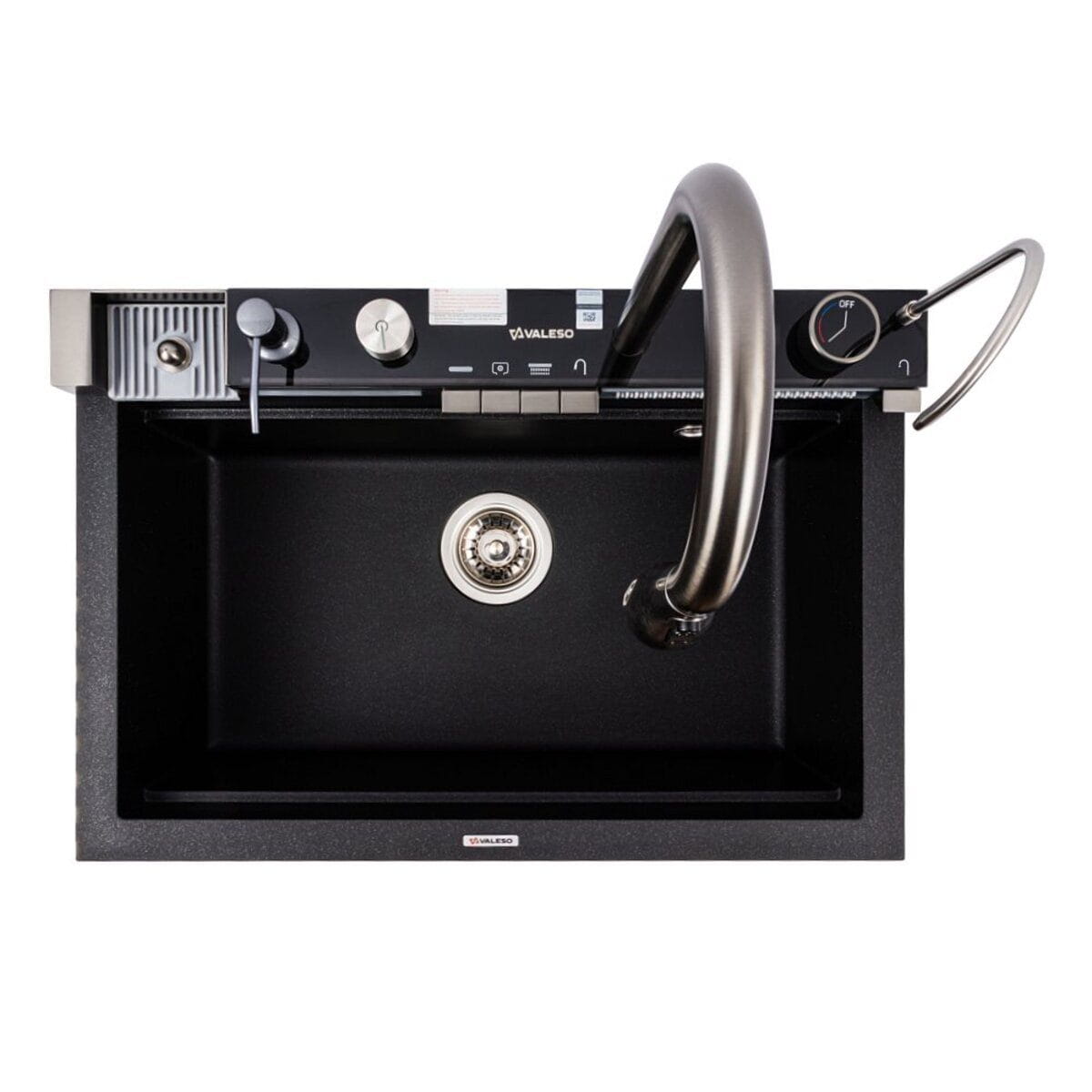 Многофункциональная мойка Valeso Irena 680×460 накладная, гранит, черная металик