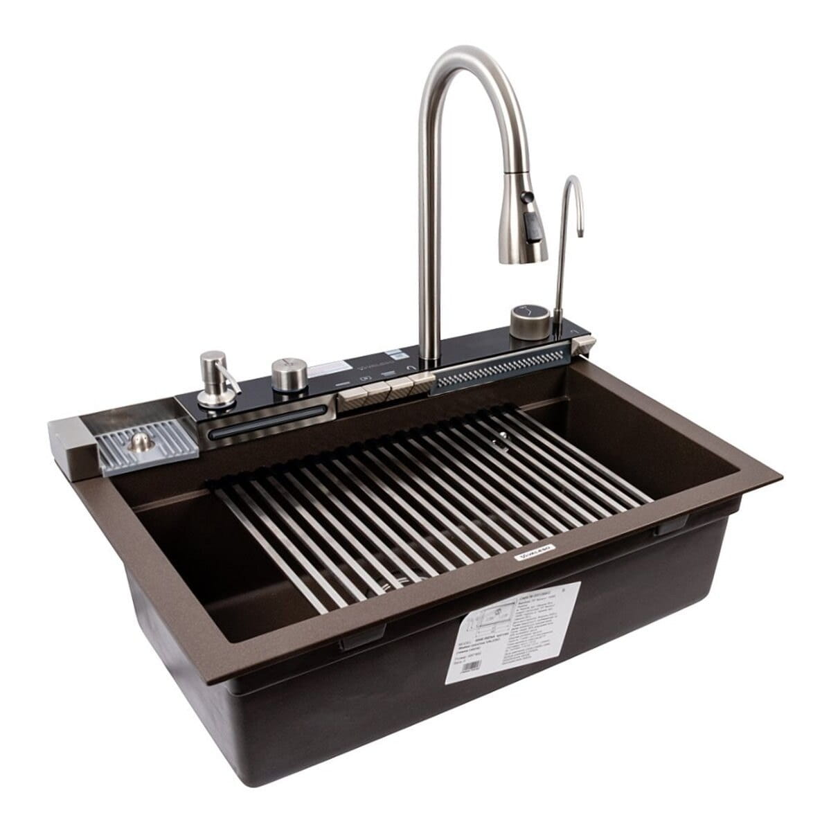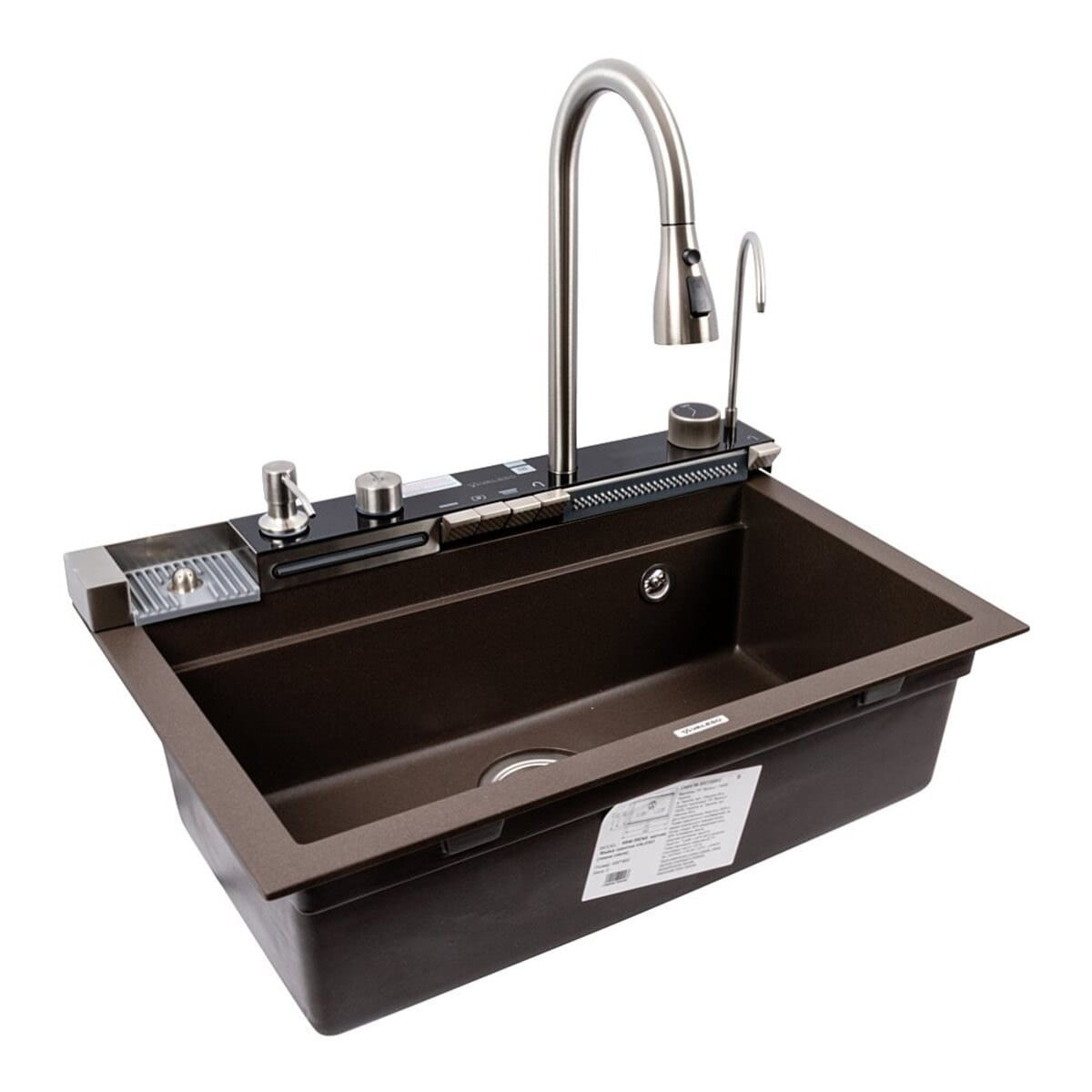 Многофункциональная мойка Valeso Irena 680×460 накладная, гранит, коричневая матовая