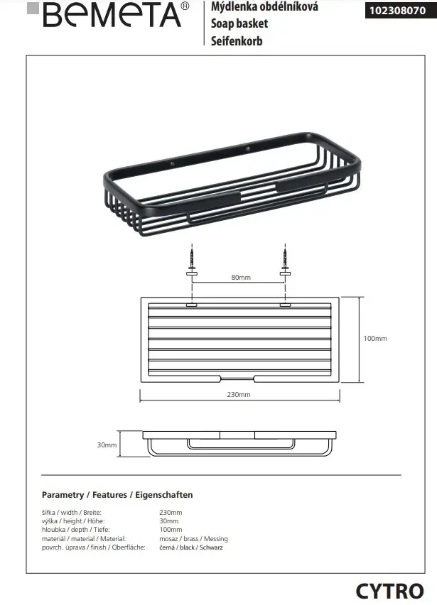 Мыльница Bemeta Cytro настенная, металл, чёрная (102308070)