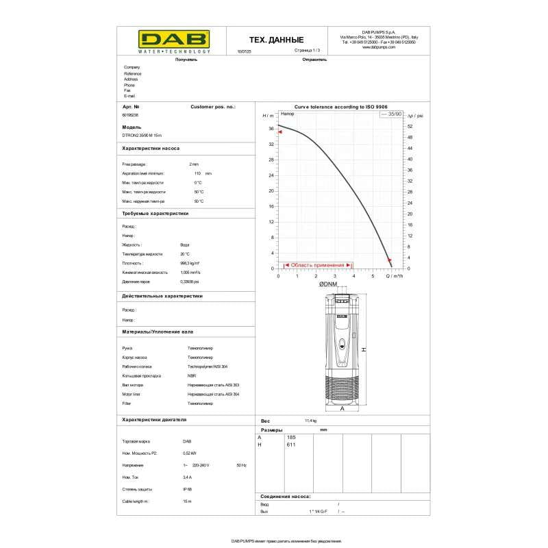 Насос колодезный DAB DTRON2 35/90 M 0,6 кВт H 37 м Q 100 л/мин центробежный + пульт ДУ (601120238)