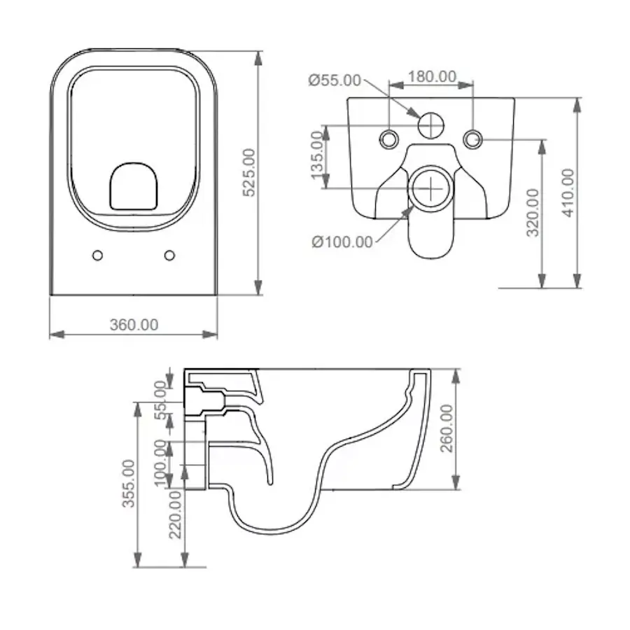 Подвесной унитаз GSG Brio 525×360 прямоугольный, без сиденья, белый (BRWCSO000)