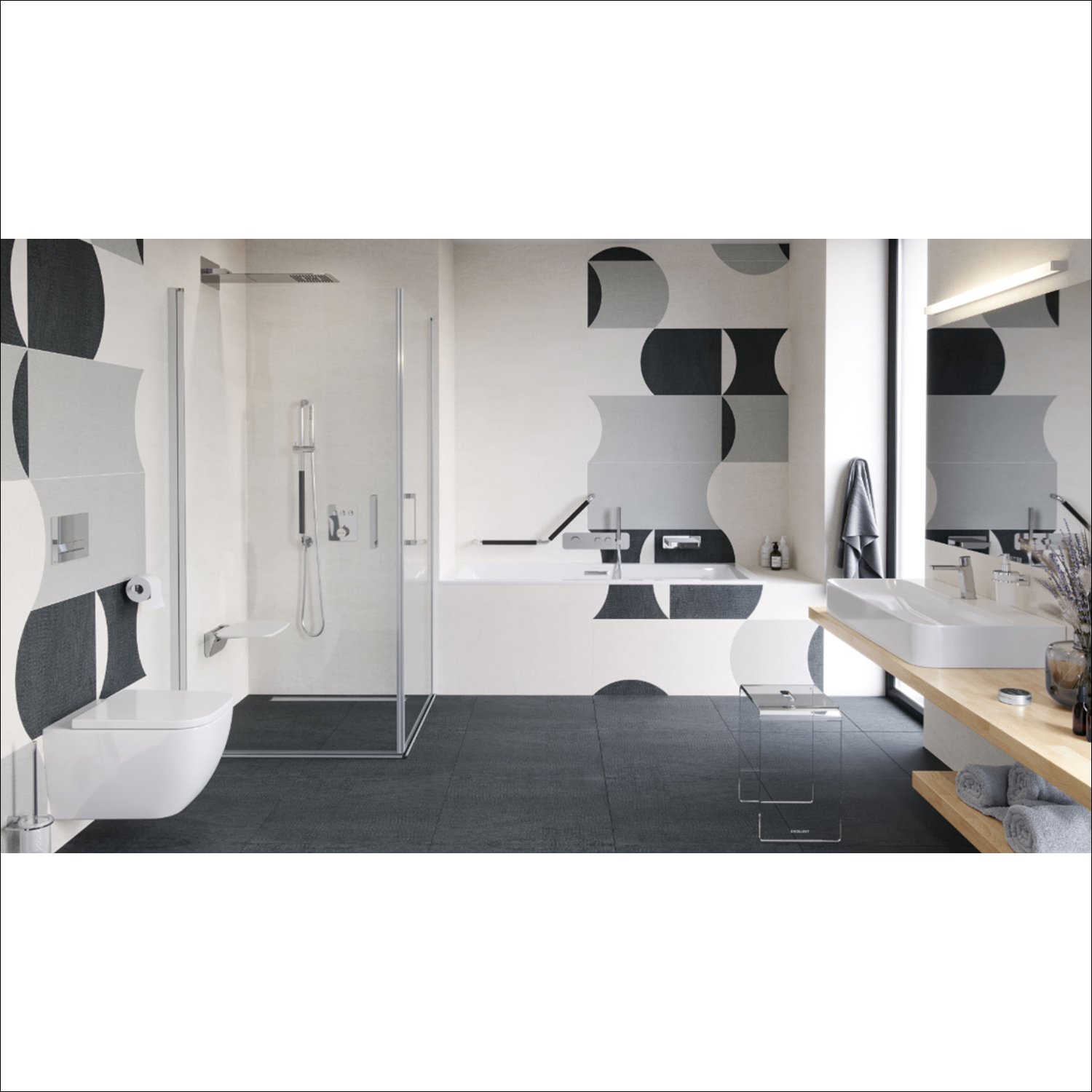 Поручень для ванны Excellent Hendi настенный, латунь, хром/черный (DOEX.1845CR)