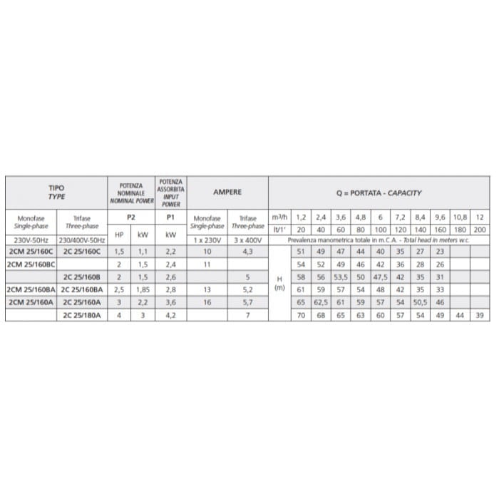 Поверхностный насос Speroni 2C 25/160B 2,6 кВт H 58 м Q 160 л/мин центробежный