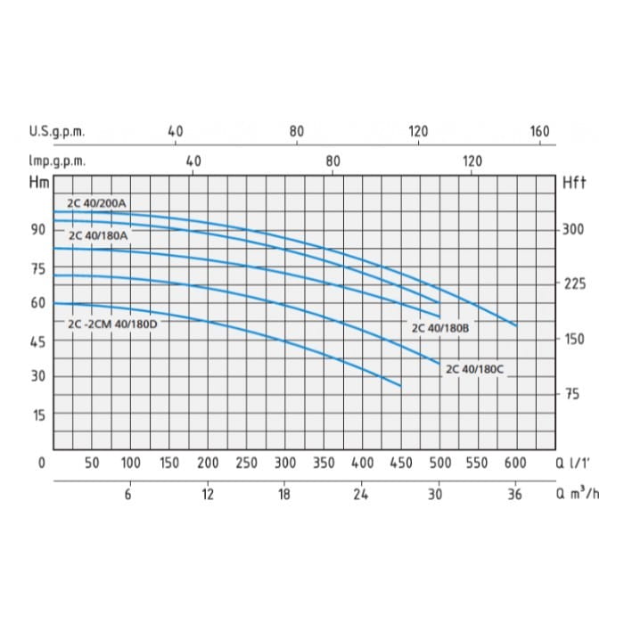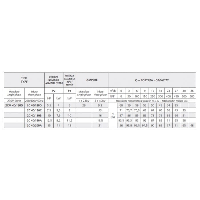 Поверхностный насос Speroni 2C 40/180D 6 кВт H 60 м Q 450 л/мин центробежный