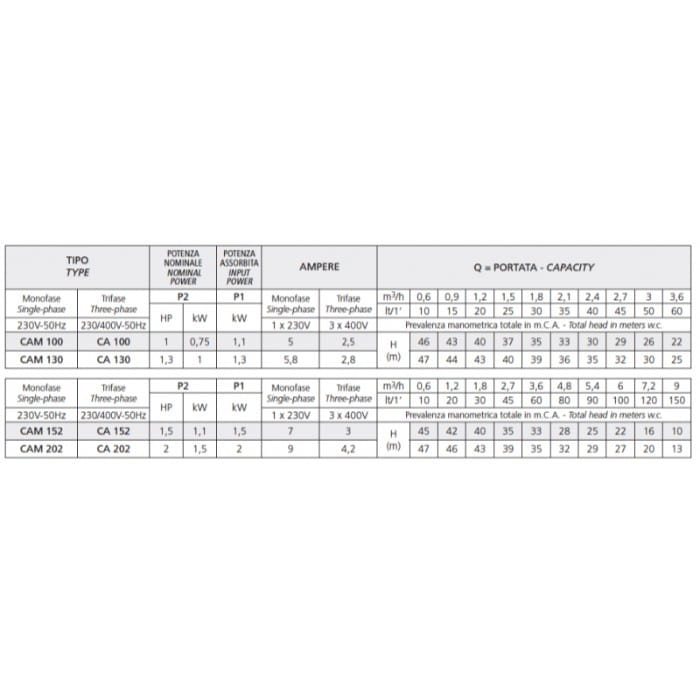 Поверхностный насос Speroni CAM 100 0,75 кВт H 45 м Q 60 л/мин центробежный
