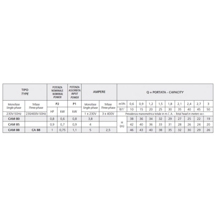 Поверхностный насос Speroni CAM 80 0,75 кВт H 46 м Q 50 л/мин центробежный