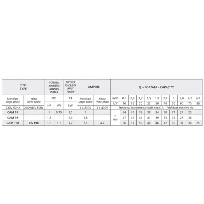 Поверхностный насос Speroni CAM 98 1 кВт H 47 м Q 70 л/мин центробежный