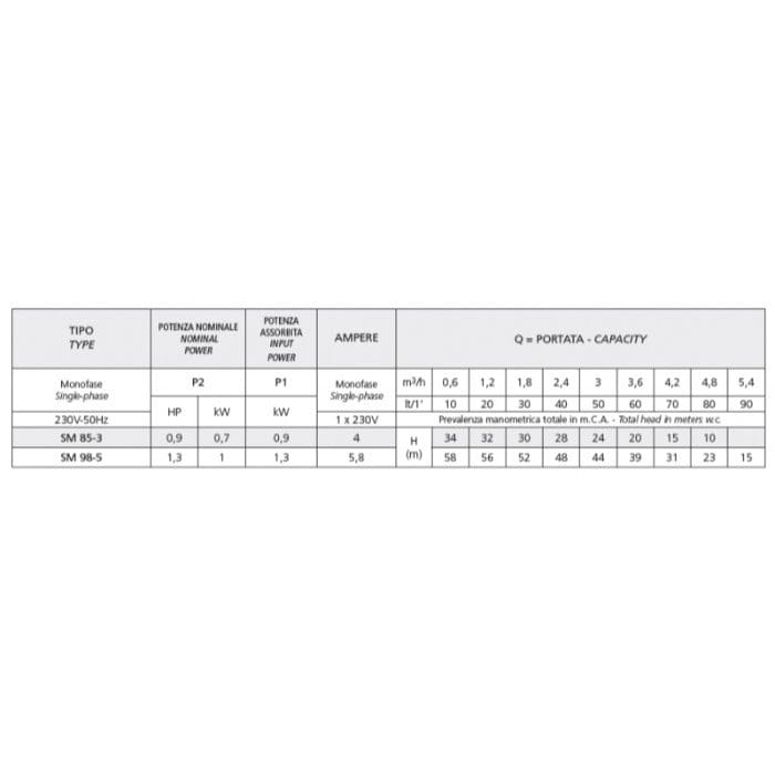 Поверхностный насос Speroni SM 98-5 1,3 кВт H 58 м Q 90 л/мин многоступенчастый
