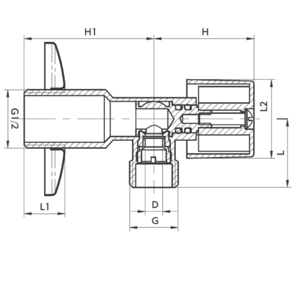 Приборный кран KFA Armatura 1/2″х1/2″ угловой, латунь (707-020-15)