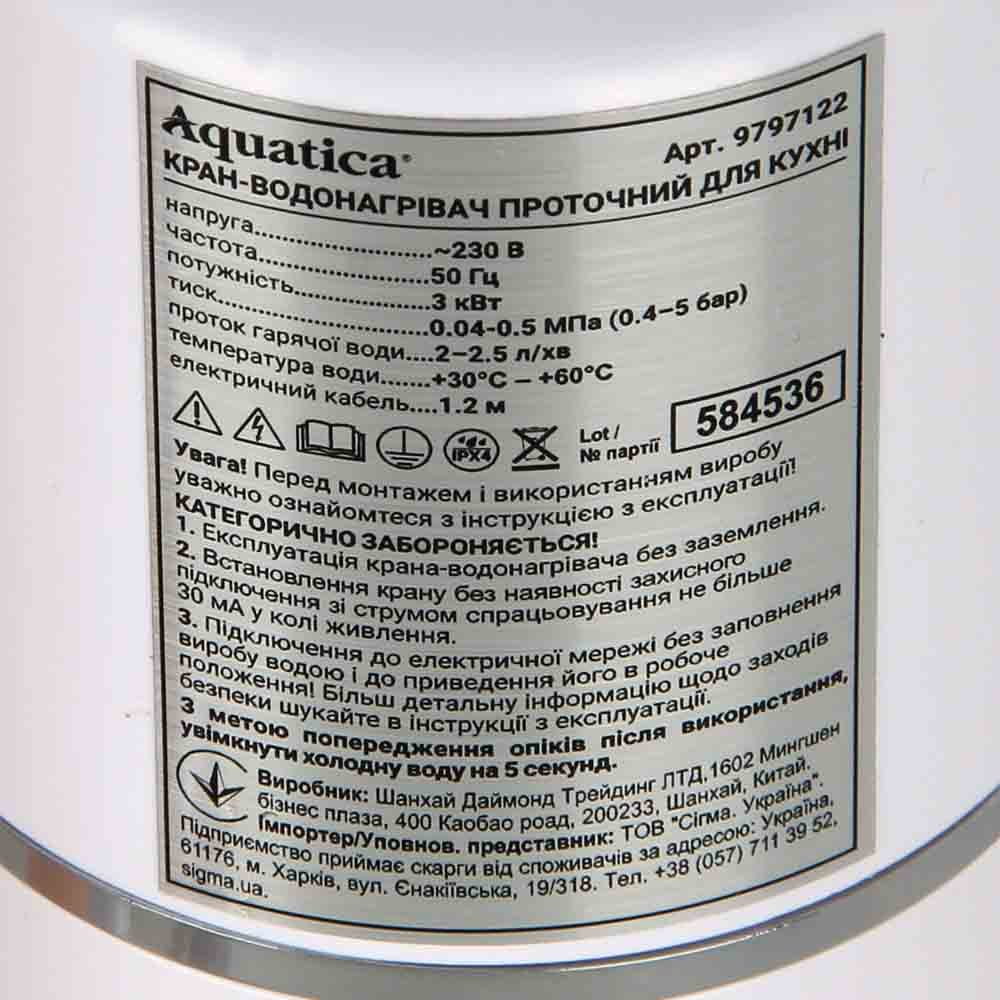 Проточный водонагреватель Aquatica NZ-6B212W 3 кВт однофазный, хром/белый (9797122)