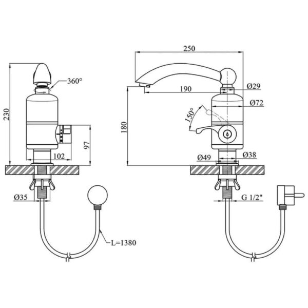 Комплектация | Проточный водонагреватель, Кабель (1,2 м) |