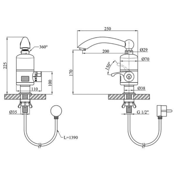 Комплектация | Проточный водонагреватель, Кабель (1,2 м) |