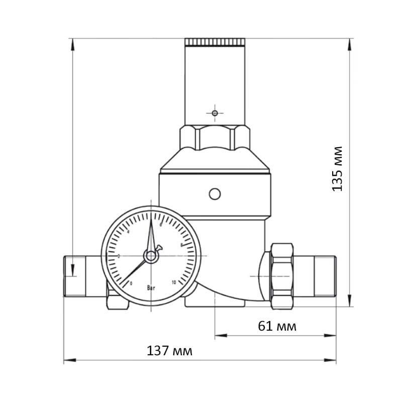 Редуктор давления Koer KR.1239 – 1/2″ с манометром, латунь (KR3183)