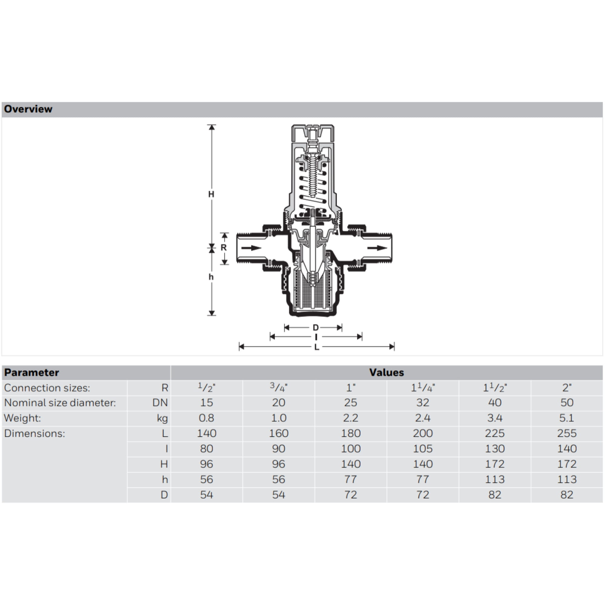 Редуктор давления Resideo (Honeywell) D06FH 1 1/2” НН для воды, с манометром, латунь (D06FH-11/2B)