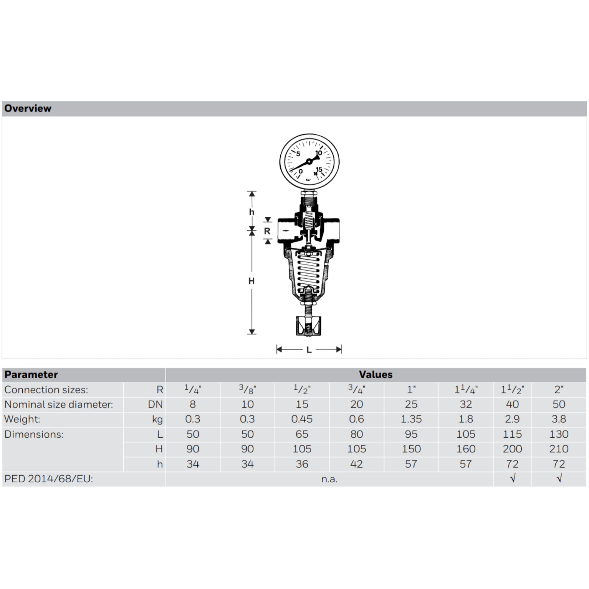 Редуктор давления Resideo (Honeywell) D22 3/4” ВВ для воздуха, с матометром, латунь (D22-3/4A)