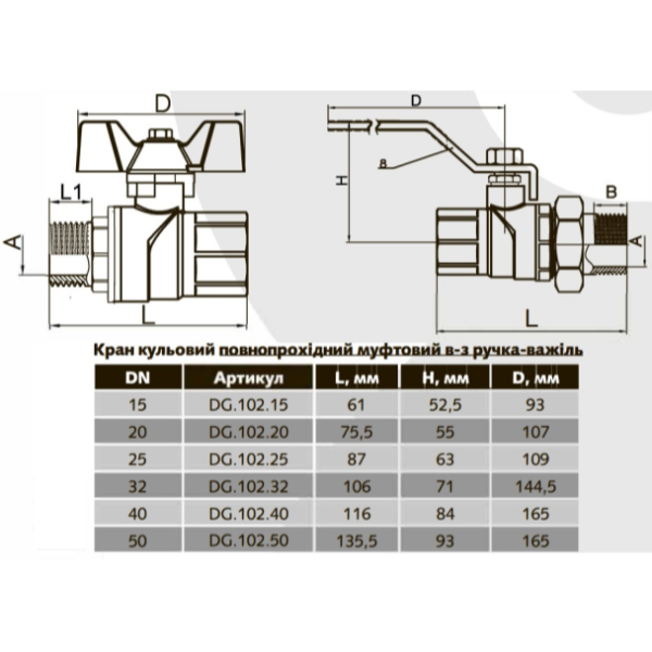 Шаровой кран DK Grand 1/2″ ВН прямой, латунь никелированная (DG.102.15.)