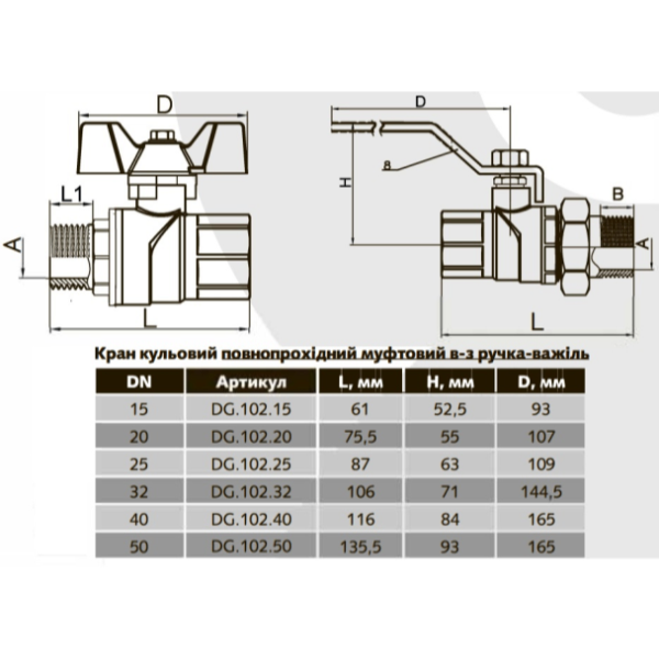 Шаровой кран DK Grand 2″ ВН прямой, латунь никелированная (DG.102.50.)